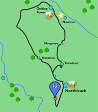 Taking in the picturesque Cotswold villages of Turkdean, Notgrove, Naunton, Hazelton and Guiting Power, you will find some of the finest Cotswold scenery to enjoy. There are a few Cotswold pubs on route including the Black Horse and Hollow Botton - both serving Donnington Ales.