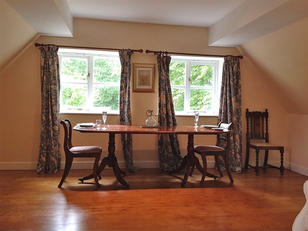 The accommodation comprises ; Ground floor :kitchen/breakfast room. First Floor: Large open plan sitting room with dining area, bedroom with double bed (5ft) en-suite bathroom and dressing room. Outside: there is parking for 2 cars and a small gravelled sitting area.