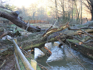 The oak tree is currently blocking entry to the Centre’s woodland area, Gruffalo trail and adventure playground and spans the entire trail, brook and edge of the mill pond.
