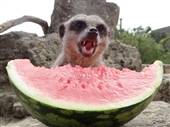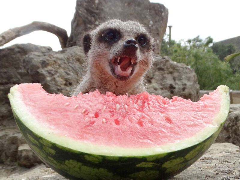 The Lions were given blood lollies, Lemurs treated to frozen blueberry smoothies (with mixed fruit) and the mob of Meerkats were given one of their favourites - refreshing watermelon. One Meerkat in particular, dominant male Marley, was so possessive over the treat, he did everything he could to stop the others taking a bite. Photos include him sinking his sharp teeth into the watermelon. Once you see the photos, you'll know why he's been given the nickname 'snarly Marley'.