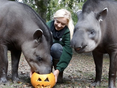 Chris Kibbey, Section Head of Primates and Small Mammals, said: “As well as ghosts, ghouls and witches, the end of October also signifies an abundance of pumpkins! These make great enrichment items for our animals and allows the keepers to be a bit creative too. This year, our Dwarf Mongoose family experienced them for the first time, and the young triplets enjoyed putting their arms through the eye holes to get at the treats inside. The pumpkin offered to the Wolverine didn’t last long as they destroyed theirs to get at the contents. The Giant Tortoises, Tapirs and Giant Anteaters also got into the Halloween spirit with their very own pumpkin treats too.”