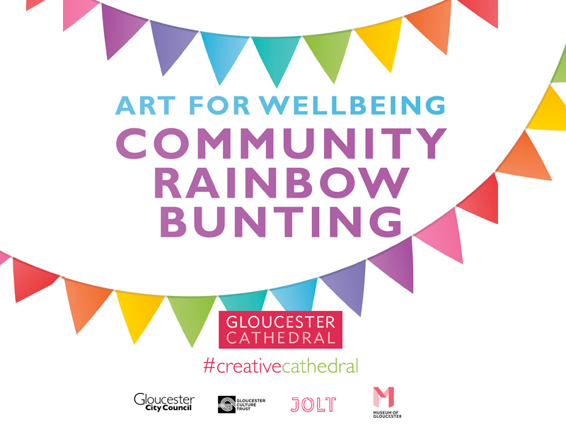 On Wednesday 8 July the Cathedral will launch a new craft-based activity which can be downloaded via the Cathedral’s website. The Community Rainbow Bunting Project has been developed by community artist Jo Teague with support from the Cathedral and Gloucester Culture Trust.  This simple but creative craft activity can be completed by individuals or households using a downloadable handout and step by step filmed instructions.  The project also offers 50 free craft packs for those who do not have materials at home.
