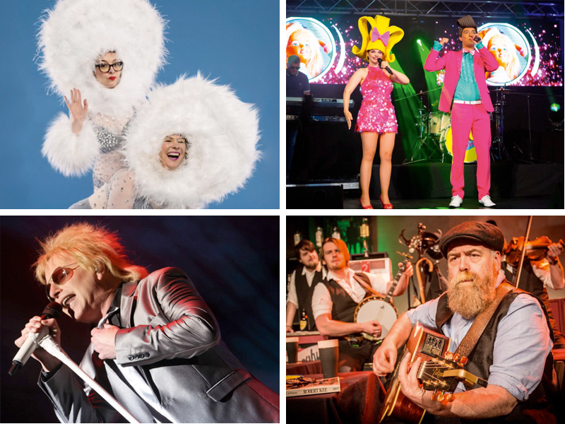 Music lovers can enjoy live performances featuring tribute acts celebrating the music of ELO, Rod Stewart, Bee Gees, and Pink Floyd, catering to diverse musical tastes.