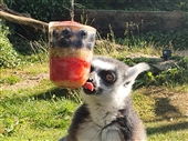 Chris Kibbey, Assistant Animal Manager at Cotswold Wildlife Park & Gardens: "‘It’s hot, hot, hot here in the Cotswolds, and keepers have to be prepared to keep themselves and the animals under their care cool. As always, we ensure all animals have access to adequate shade and plenty of water, but with hot temperatures forecast, it also allows us to be a little inventive with our enrichment. The Lemurs were given frozen fruit popsicles made using ingredients from their normal diet – berries, pear and grapes which they enjoyed. Sometimes simply freezing an animals’ diet in an ice block provides a stimulating challenge for them, as was the case for our Tapirs Gomez and Lolita who devoured their melon, pear and banana frozen treat in no time. Watermelon is a delicious summer treat and perfect for our Meerkats who use their strong claws to break through the skin before using their snout and tongue to lap up the insides. For the first time, our Ring-tailed Lemur twins, born earlier this year, enjoyed their first taste of watermelon too".