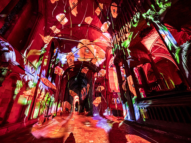 Set within the Cathedral’s beautiful sacred space, this immersive installation invites visitors to pause, reflect and remember the sacrifices of the First and Second World Wars, while offering a message of peace and hope for the future. Through evocative projections, poetry and a narration by Oscar-winning actor Eddie Redmayne, Poppy Fields explores the human cost of conflict while offering a message of peace, remembrance and hope.